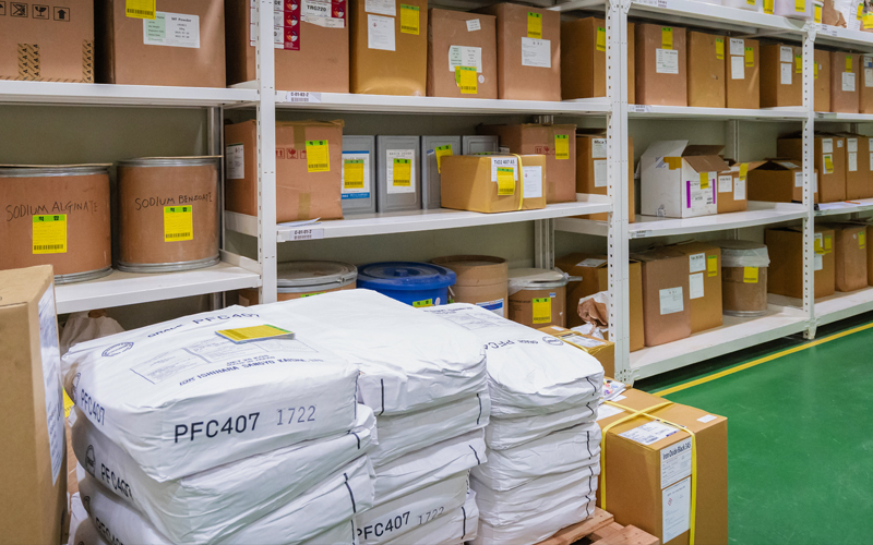 Warehousing of cosmetics ingredients